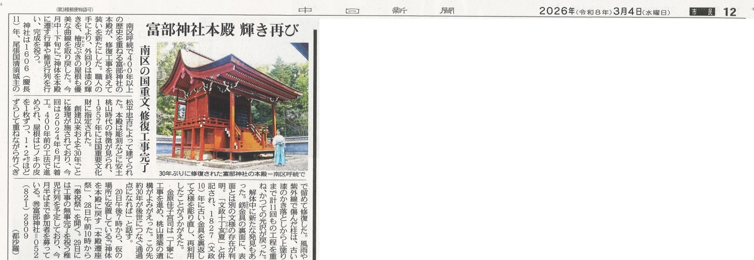 2025年11月12日 中日新聞(尾張版) |